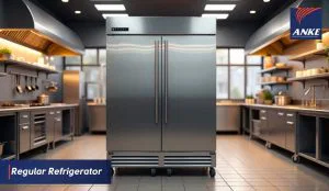 A regular refrigerator is a general-purpose cooling appliance used in homes or commercial kitchens to store food and beverages. While it effectively preserves a variety of food items, it lacks the specialized features necessary for displaying and maintaining the quality of cakes and pastries in a commercial setting.